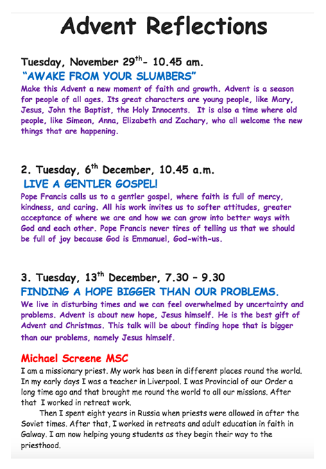 • Lenten Retreat29th November 2024